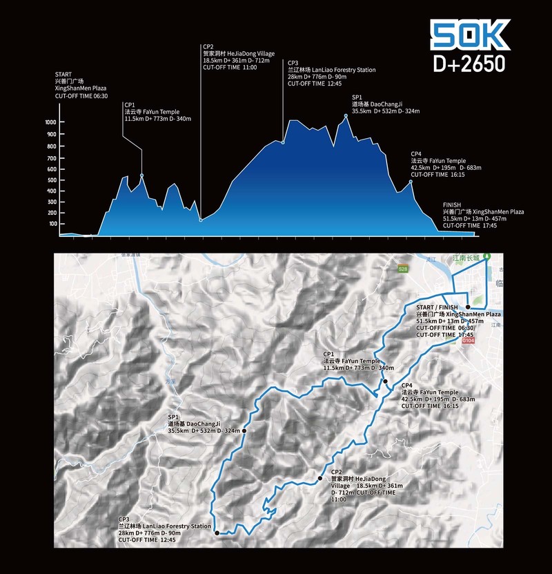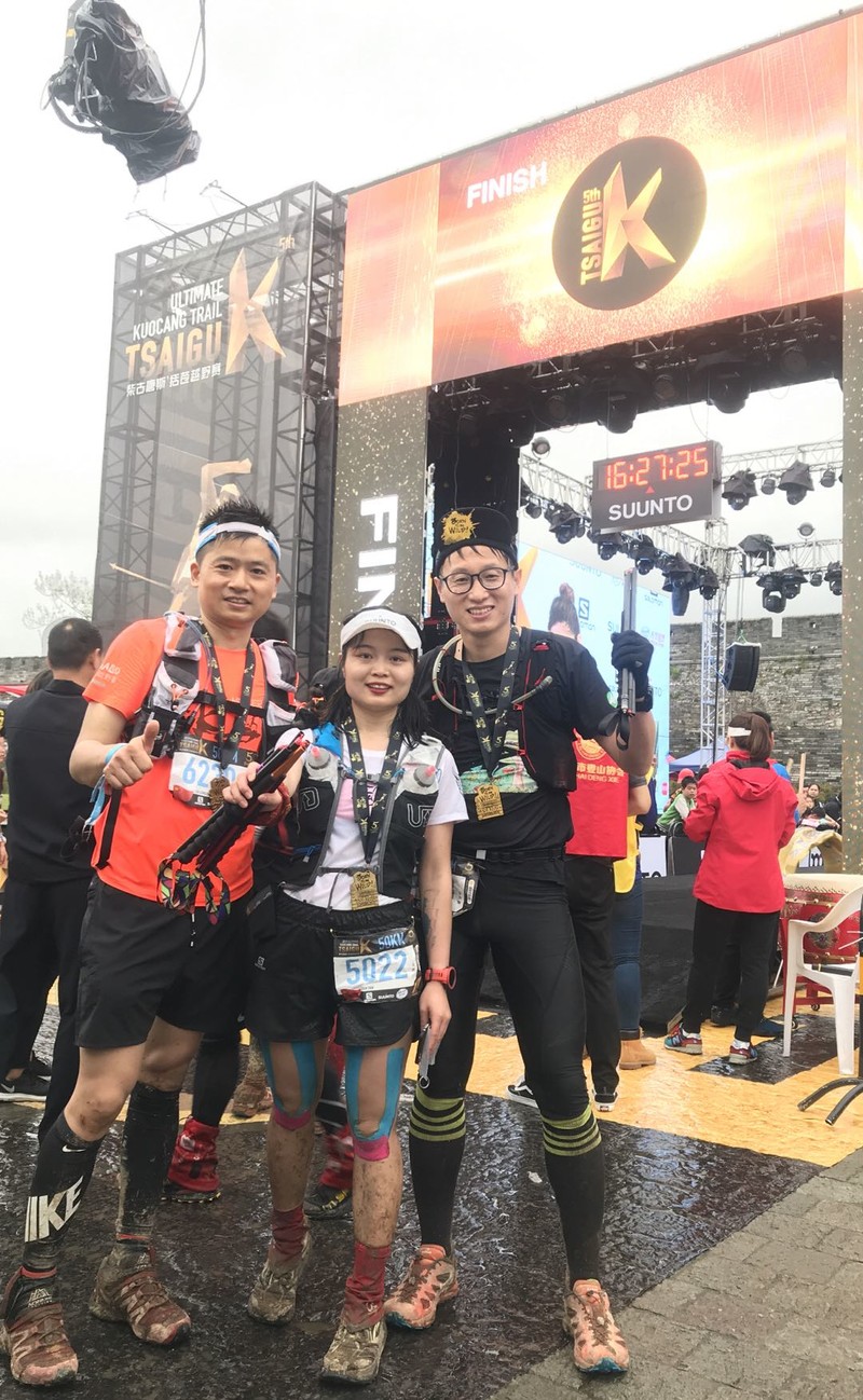 原以为CP2-CP3是这个50公里赛道最难的一部分,有着700m的爬升,仅有90m的下降。不过这里的爬升基本都比较缓和,极少有莫干山那样的陡坡,所以实际体会下来,并没有觉得很难。路上和老蔡捡到了成都过来的二胖姑娘,并结伴一直到终点。本来还惦记着第二天的半马,我和老蔡打算笃笃定定的溜达完赛,结果有一段下坡被二胖带的飞了好久。