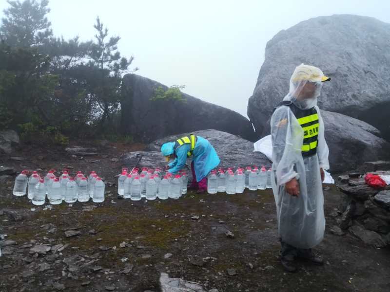 SP1道场基只是一个补给点,并不打卡,补给也比较简单,这里的工作人员应该是最少的,但感觉却是气氛最high的,还未进场,就听见里面喊“张公子到、李公子到..."什么的。志愿者热情的跟身边所有的选手聊天打气。作为海拔最高的一个SP点,这里的水和食物都是志愿者背上来的,非常辛苦!