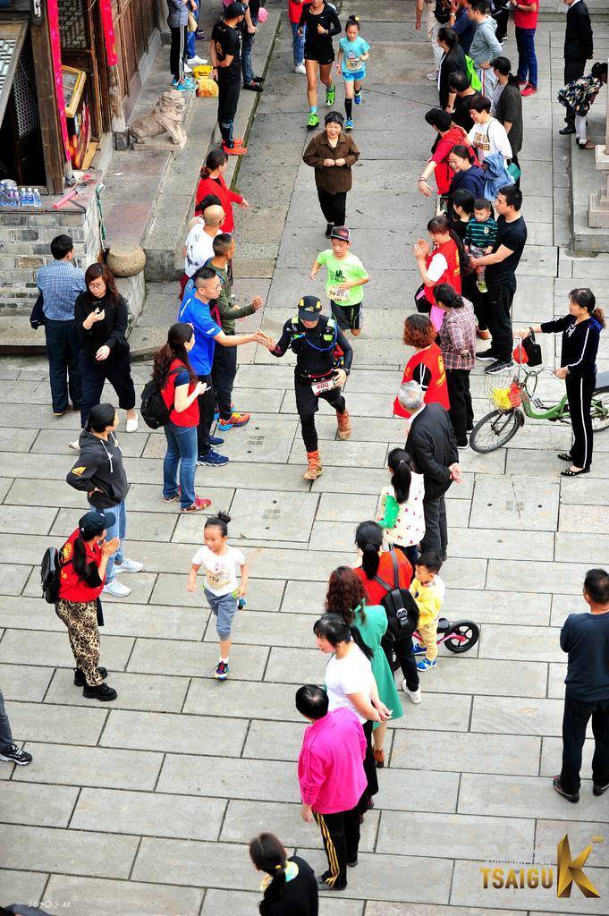 此时大脑已经清醒过来,2km的石板路下降,2km的盘山公路下降,几百米的石板路下降后便来到了马路上。完赛问题不大,于是便一个人在路上溜达向前,偶尔有选手喊着加油从身边跑过……10点左右,看到朱江短信询问到哪了。路上的行人偶尔会喊着加油,每个路口都有志愿者在指引及鼓励加油,于是便又慢跑起来。听到不远处终点的广播声和音乐声,加上路上行人的增多,脚底的疼痛已经忘却,跑步的欲望又被点燃……最后的几百米,紫阳古街,完赛的选手、游客、行人、还有参加亲子跑的其他小朋友等……仪式感爆棚!
