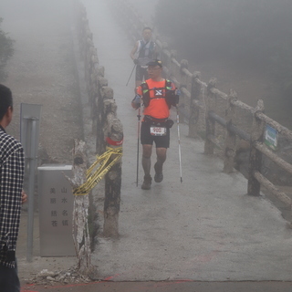 由于下雨,组委会启用备选线路,绕过了原来的水路,一段缓坡,1km已经走完,天开始黑下来了,拿出头灯,开始陡坡上升。刚刚换装点换成紧身长袖+冲锋衣的缘故,汗水从额头和身体各处冒出来,脱下冲锋衣也不方便,只能拉开拉链,一个人艰难前行。走100步停下来休息几十秒,口里默数着步数,此时已不能入白天那边上坡可以一步不停的向上了……路上碰到一个停下来整理东西的,于是两人便结伴而行。终于到达坡顶,一段平路后,一段陡下坡。调大头灯亮度,府下身子,用手臂的力量支撑登山杖,一脚一脚的下去。偶尔还有志愿者设置的绳索可以手拉……终于到达坡底,志愿者送上热水,感谢!还有鸡蛋,可惜没有胃口,吃不下了……接下来4km的机耕道到达SP2大楼基。看下时间还不到20:00,于是便决定快走到SP2。一路上,头灯照着反光条看似很远,其实就在20米不到……21:00出头到达大楼基,此时胃口已经大减,只能自己逼自己吃些东西,勉强喝了3碗热汤+半个馒头,一些干果。感觉身体有些发冷,21:20匆匆出站。