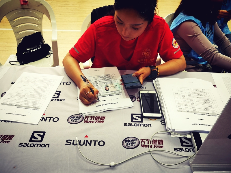 进入领物现场,人已经很多了。直奔领物区,门口第一道检查的小妹不仅认真人也很美。拿着单子上环、强装检查、领取GPS和参赛包,整个过程十分顺利,标准化流程在柴古执行的很彻底。