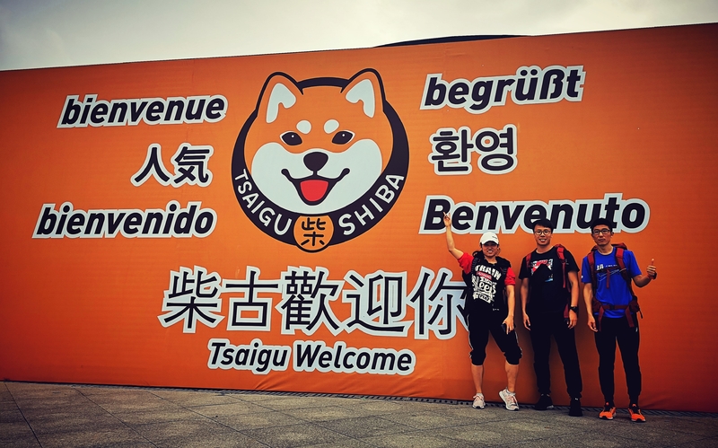 下了火车直奔领物现场,硕大的牌子中间那只可爱的柴犬欢迎着所有跑者,一行三人拍照留念,但自己竟然忘了拿出飕飕跑团的团旗和轻力兔宣传旗拍照,甚是遗憾。
