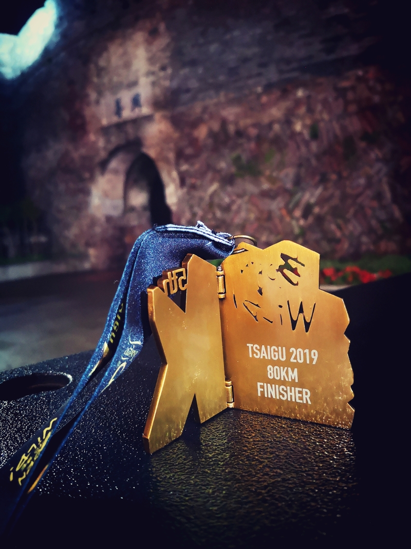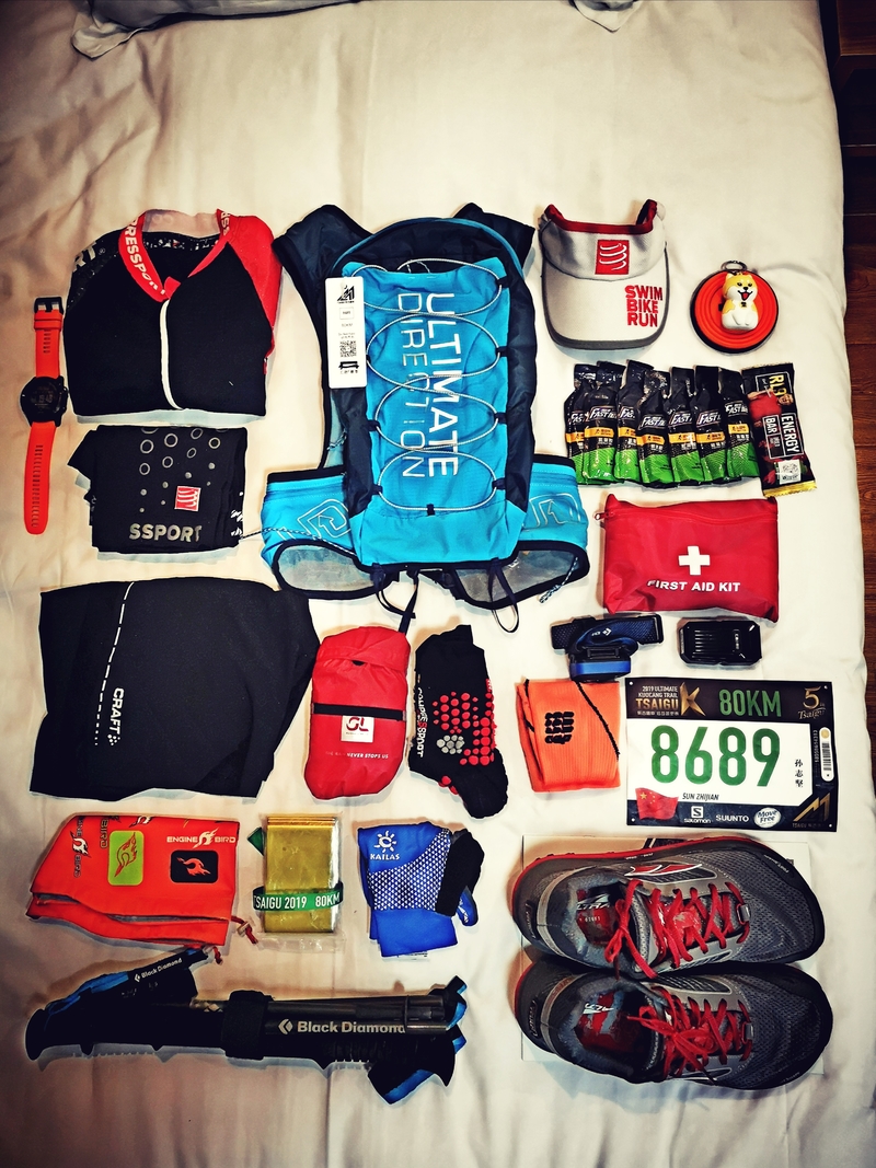 如果爱一个人就让他(她)去柴古,如果恨一个人也让他(她)去柴古,因为那里既是“天堂”,那里又是“地狱”听说柴古唐斯,也是几年前在跑友群听大神提过,然后开始慢慢了解,知道了这个赛事来自浙江临海,需要征服著名的括苍山,在圈中又称“拆骨躺尸”,单听这名字就知道这个赛事的难度不一般。但几年前的自己还没有能力参赛更没有资格报名,所以对于柴古也只是停留在向往和憧憬的层面上。经过几年的跑步及赛事积累,终于在去年如愿报了65公里的组别,但却因工作的变动打乱了所有计划,忍痛把名额转了出去,就这么第一次与柴古擦肩。也许最美好的风景都在未来,2019年的柴古如约而至,报名、训练都在计划中一步一步的进行。但对于上有老下有小,还有条拉拉的自己来说,外地比赛会有很多牵绊,这也许是很多我这个年龄跑者的痛点吧,爱好和家庭如同鱼与熊掌,有时很难兼得。还好,自己还是如愿去了柴古。One 出发出发前的几天就开始收拾行装,早有耳闻对于强装的检查柴古十分严格,其实也是对自己负责,毕竟越野跑存在一定的危险。4月19日的早,溜狗、吃早点核对该带的东西早早就出了门,生怕再生变故。一路高铁飞驰,车外的风景也变得越来越美,到达宁波后换乘去临海的高铁,一个车厢基本全是去柴古的跑友,简直成了柴古专列。赛事做成这个样子,也真心佩服。Two 领物下了火车直奔领物现场,硕大的牌子中间那只可爱的柴犬欢迎着所有跑者,一行三人拍照留念,但自己竟然忘了拿出飕飕跑团的团旗和轻力兔宣传旗拍照,甚是遗憾。进入领物现场,人已经很多了。直奔领物区,门口第一道检查的小妹不仅认真人也很美。拿着单子上环、强装检查、领取GPS和参赛包,整个过程十分顺利,标准化流程在柴古执行的很彻底。领完参赛包,简单的转了转,偶遇世界级的越野大神,拍照留念。这也是这次柴古之行唯一一张和大神的合影,我心心念的珊瑚女神也只能远远观望,碎碎念。Three 吃喝都说柴古小吃很多,回到酒店大众点评搜索附近吃喝,此处省略文字,图片更加直接。吃饱喝足漫步在临海街头,城市不大却给人一种安静和祥和。Four 定妆回到酒店开始打点出发的行头,确定一下强装,然后摆拍留念。Five 出发大赛前的失眠总是如约而至,终于熬到了起床时间,打开窗帘看着外面的雨稀稀拉拉的下着不停,心中忐忑的心情油然而生,雨战看来在所难免。简单吃过就和好基友出发直奔起点与小教练汇合,这时的雨也越下越大。到了起点,大雨并未浇灭所有跑者的热情,反而更加炙热和强烈。站台中间老板娘、珊瑚为所有跑者加油打气,一起高唱天生狂野,那一刻只有亲临现场才能感受那份激情,那份爱。出发的口令响起,所有跑者如离弦之箭飞了出去。因为自己跑80公里,加上之前的经验,配速并没有多快,一直保持着自己理想的配速前进。CP1之前的路况很好,爬过古城墙就连上了公路,沿途还拍了几张照片,留作纪念。到达CP1后,喝了碗热乎的汤,补了水,又抓了把葡萄干就上路了。因为柴古真正的虐才正式开始。从CP1-CP3,这是人生中参加所有越野赛跑的最苦的24公里,2700的爬升和1200的下降,真心跑到怀疑人生。大雨本来让赛道更加湿滑,在加上110的几百人先出发,把赛道踩得泥泞不堪,摔跤、屁降各种状况频出,加上山顶的大雾,真实举步维艰。第一次感觉到了上山容易,下山难的苦楚。终于熬到了CP3,进站的那一刹那眼泪差点没落下,心里在不停的咒骂太TM虐了,为什么来遭这份罪。可听着志愿者在大声广播距离出站还有多少多少时间,自己只能狼吞虎咽的强吃各种补给,因为熬到这里没有被关,就一定要挺近终点。站在括苍山的最高点,大雾弥漫。心心念的云海并没有看见,这也是此次柴古之行的一件憾事。CP3出发不敢耽误时间,但在一小段盘山公路上差点跑错,好在有其他跑友告知,要不然铁定退赛了。到达CP4之后,简单吃了几口补了可乐就匆忙上路。可是完全低估了CP4-CP5这9公里的路程。预想着2个半小时跑完,为CP6赶点时间,可没想到足足3个多小时才跑完。好在那里有吃到了这辈子最好吃的牛肉汤,眼圈泛红的连吃三碗。经过一路追赶,到达CP6距离关门时间还有不到1个小时。整个人也轻松了下来,因为接下来的路程都相对简单,如果不出什么状况完赛已经没有什么问题,可是,可是,可是,我竟然遇到了各种神奇生物~~~距离出站几米的地方,竟然遇到了蛇,对于这种生物我一直心声恐惧。好在对视后,它离我而去。接下来的路程我格外小心,生怕再碰到。除此之外,最后的一段路程,由于缺觉,加上雾气太大,头灯没来得及换电池,差点直接走到路旁的深沟里。现在想想,还有些后怕。到达CP7感觉自己已经耗尽了95%的电量,可那一站的志愿者大姨们,为你加油鼓掌的那一刹那,又觉得浑身充满力量。在这里喝了碗粥,就向终点继续进发。经过了21个小时零几分的长途跋涉,终于在凌晨三点多到达了终点,为自己的承诺画上了句号。走过紫阳街,跑向终点,那一刻觉得这一切都是那么的不容易,又那么的值得。Six 结语我是个不会讲故事,也不擅长写故事的人,撩撩草草的记忆,只能记录下柴古经历的只言片语。想说的其实很多,却又不知从何说起,成绩虽然还是很渣,但已经很是满意。因为自己有能力征服这样的赛道,有能力从起点回到终点,足矣。付出总是会有回报,但这一次也把自己跑到崩溃,让自己彻