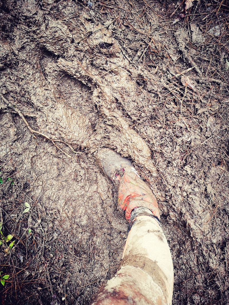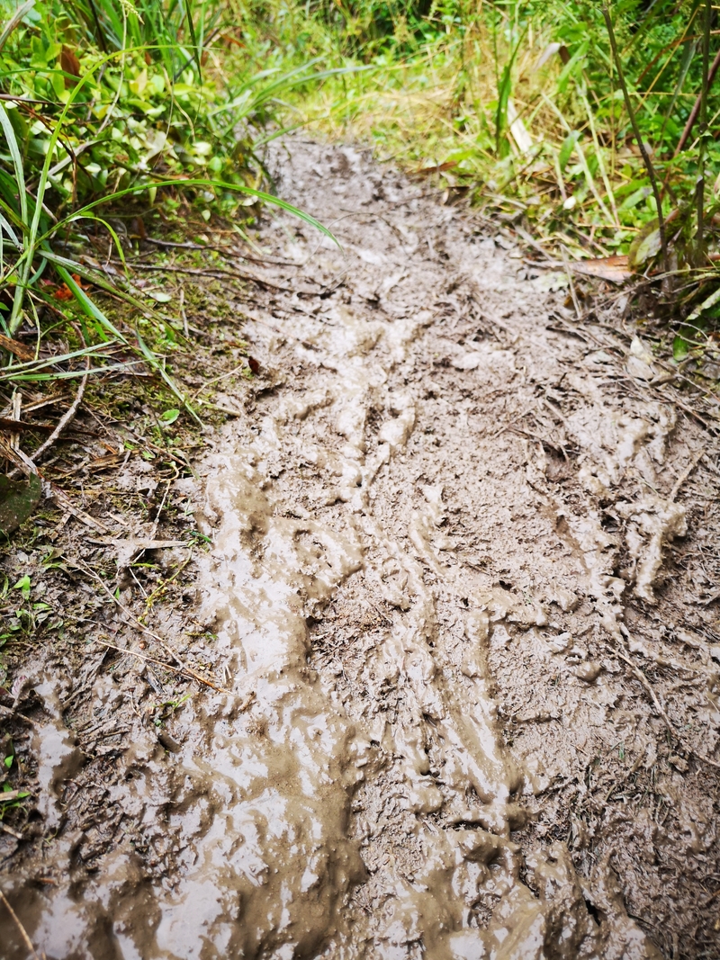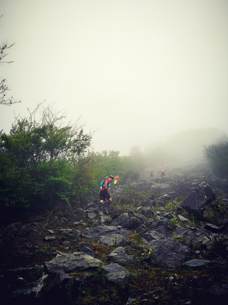 从CP1-CP3,这是人生中参加所有越野赛跑的最苦的24公里,2700的爬升和1200的下降,真心跑到怀疑人生。大雨本来让赛道更加湿滑,在加上110的几百人先出发,把赛道踩得泥泞不堪,摔跤、屁降各种状况频出,加上山顶的大雾,真实举步维艰。第一次感觉到了上山容易,下山难的苦楚。
