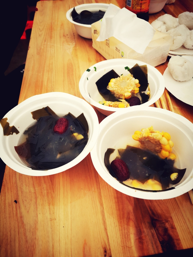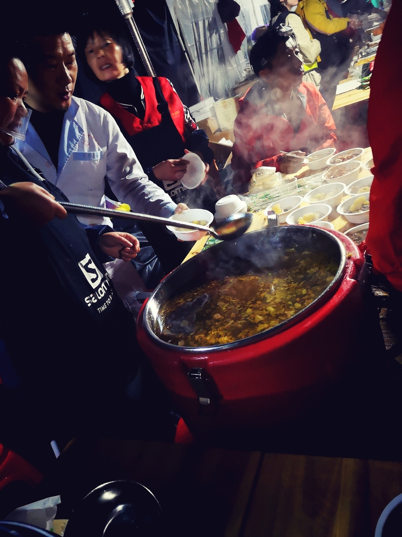 到达CP7感觉自己已经耗尽了95%的电量,可那一站的志愿者大姨们,为你加油鼓掌的那一刹那,又觉得浑身充满力量。在这里喝了碗粥,就向终点继续进发。