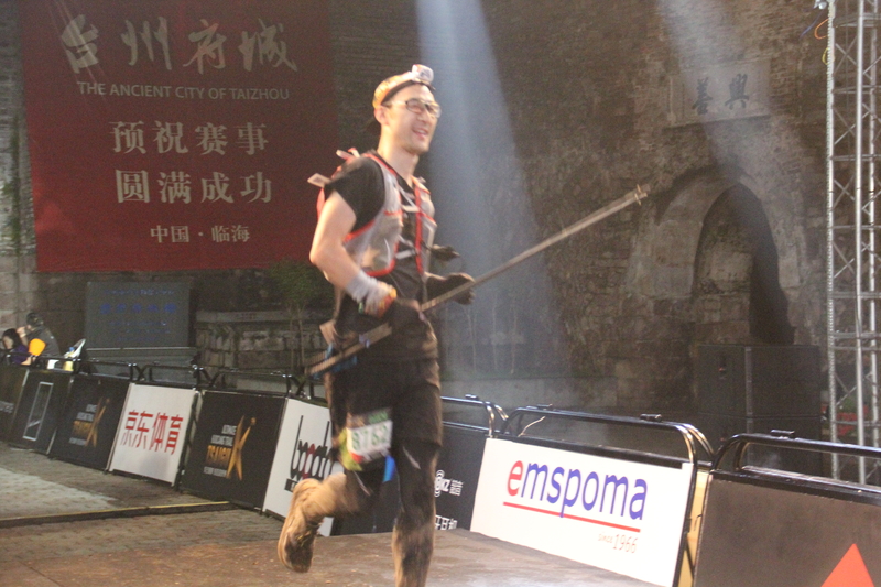 深夜4点的紫阳街非常的冷清,志愿者、结束的选手都看不到。我慢慢与前面选手拉开距离,整理衣服,想想等会怎么摆pos。本来想就慢慢走到终点线,快到的时候看到后面选手马上就赶上来了。不要跑进我的镜头啊,自己赶紧跑起来冲线。于是有一张快到模糊的冲线照。