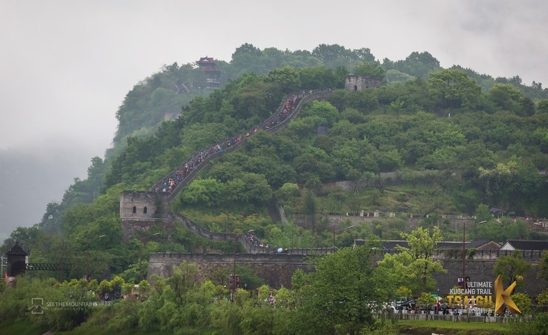 出发后沿马路跑2公里左右,爬n多台阶上城墙,在城墙上台阶上上下下跑3公里。城墙和台阶都比较宽,跑快一点不会堵车。城墙上城砖雨后湿滑,你需要一双好的越野鞋(此处广告位出售)。在城墙上顶顶从后面追上来:“终于追到你了。”(330大神你不要这样讲。)“跑快一点,上山不堵车”。然后离我远去了(说好组队的呢)。