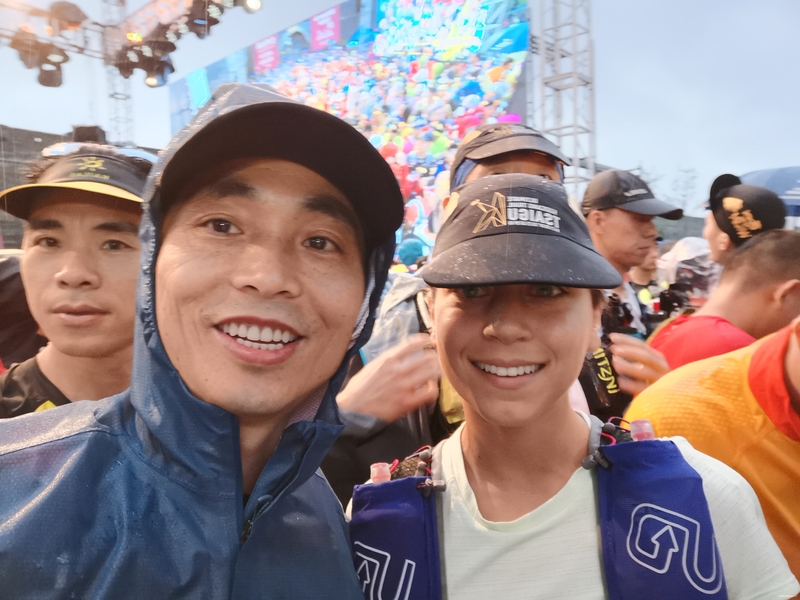 •领好装备出来转了一圈,买了件萨洛蒙的冲锋衣应付明天的雨战,继续逛,迎面看到群里的男神“二郎真菌”的巨幅海报,超帅的,合个影沾沾帅气,男神是品牌代言人,也是健身达人,怎么拍都帅气逼人,随便往人群中一站都是镜头捕捉的焦点(最后一张官方抓拍照片),亮几张让大家感受一下。对了,这次他和我一样参加50公里,7小时完赛,近千人排名44位,可见男神实力超群,恭喜男神,喜获荣誉马甲,再创人生巅峰!