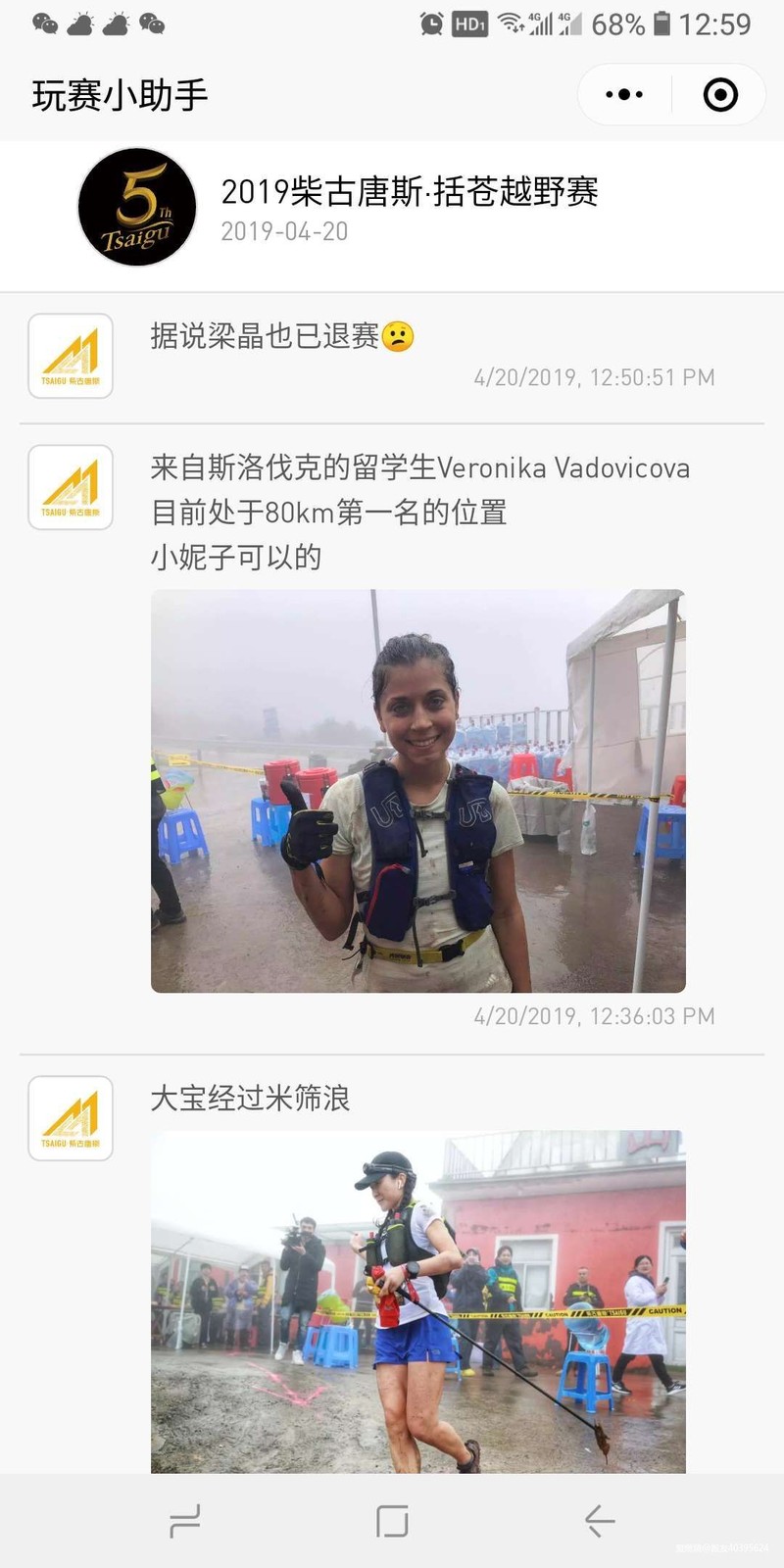 幸运的是出发前是大雨,天亮后雨逐渐小了,但雨后的山林里大雾弥漫,大家从图片里感受一下;见到了传说中山里的老奶奶,她的家人还热情的递吃的;要说柴古的志愿者真是热情,每到一个补给站,都大喊加油,主动上来询问引导要吃什么;补给更不用说,是我跑过的补给最好的赛事,每次吃到撑才离开;就是湿滑的烂泥路,让人如履薄冰,每一步都走的战战兢兢,只是再怎么小心,还是很多人体验了完美的屁降,滚的一身烂泥;看看,经过一条河,爱美的都进入了洗鞋洗衣补妆模式。。。
