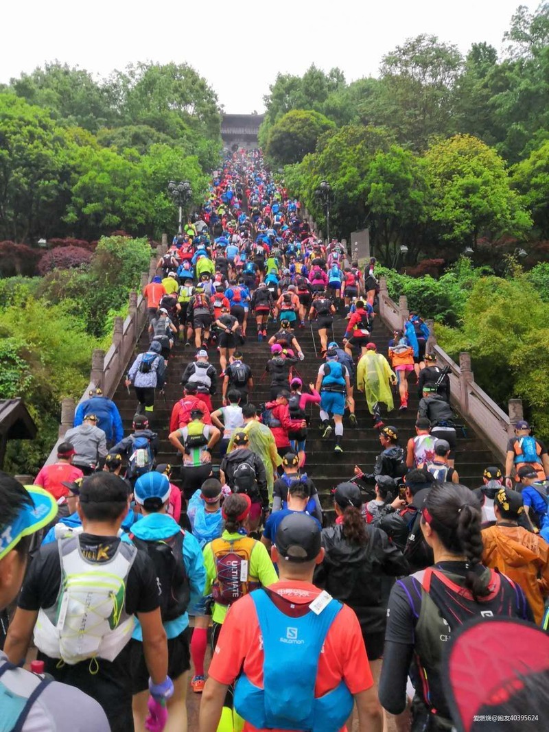 不一会听到激情的赛事主题曲“天生狂野”和现场有节奏的鼓声,倒计时完成,2200名选手们都呐喊着冲了出去,为了心中的小目标,为了生命的荣耀!来感受一下现场热烈的气氛。。。先跑过了一段公路,来到了一段长长的“天梯”,本人最怕的就是爬楼梯,只有慢慢走了,这时想起群里的爬楼大魔王“陆教官”,他这次参加的是110公里,早晨4点就出发了,估计这段他都是跑过去的吧