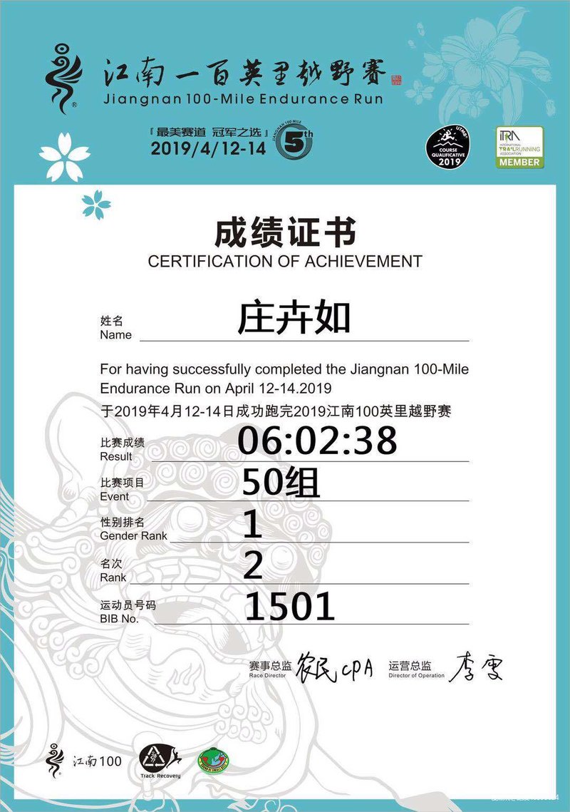 这次的赛道大部分是下坡,而一下坡我要跑起来膝盖就隐隐作痛,所以后面的二十公里,我大部分是徒步了,看着一个个从我身边飘过的人,既羡慕又无奈,这时想起了群里的2个天才少年“小馒头”和“流苏-茅神”,小馒头很少训练,确天赋异禀,百公里轻松站台;小鲜肉茅神短距离神勇无比,16年千岛湖马拉松10公里国内第一;18年南北湖越野20公里冠军;亚军一大推,动不动三分配速冲刺跑越野,搞得一票大神都胆战心惊;哎,心情失落的我又开始胡思乱想,要是像他们一样天赋就好了;实在不行,像兔神“Rabbit”也可以啊,他和我同年的,越野玩的少,但马拉松跑的超牛的;还有UTMB大神袁正林,居然干了168公里。。。不敢想象。。。