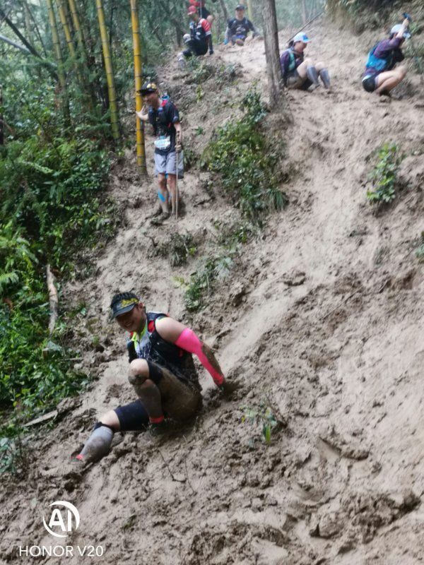 内心焦灼的我来不及喘口气,也无暇顾及上坡的陡,下坡的滑,一路奔向下一个cp点。