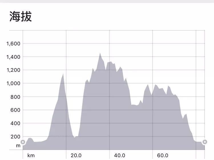 这段其实我感觉还是比较好跑,下降有1000多米,上升是500米,很多下坡是可以跑起来的。这段我逐渐找到了节奏,起跑时疼痛的右腿跟腱,和摔倒后隐隐作痛的膝盖和扭伤了一次的左脚踝这三个痛点,在这段逐渐消失掉了。这时候我对完赛,甚至进入前80名拿到那个代表荣誉的红色羽绒马甲,已经有了十分充足的信心。