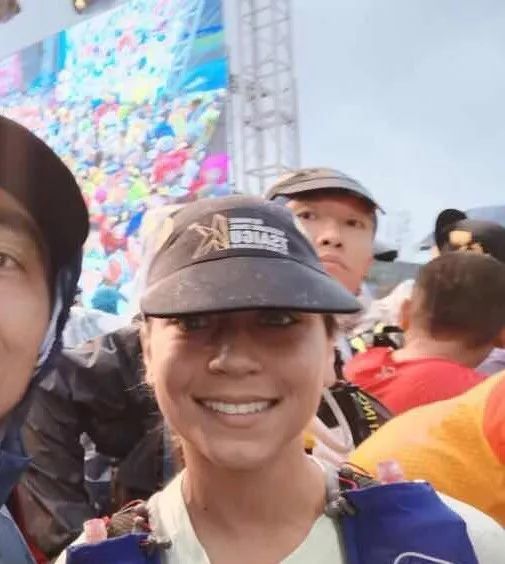 寄存后,我就直接走到了拱门之前,在所有精英选手的后面,这已经像我这样普通的选手能前进的最前了,这也是希望一开始就能不被堵车,尽力向前一些。过了一阵子,从后面挤过来一个引人注目的外国小姑娘,眼睛是碧蓝色的,一看就非同小可,应该是精英吧,我想。后来她用了不到十三个小时完赛,80km女子冠军。我还无意之间在网友的分享照片中发现,无意被同框了。