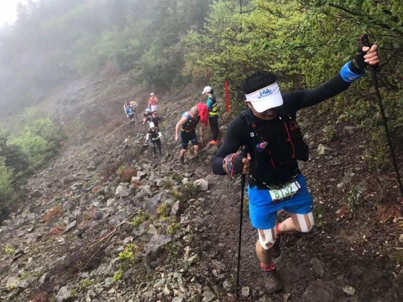 我在后面远远跟着李伟,终于到了CP1,和他距离最多不到200米。迅速进站,掏出简易水杯,快速喝掉两个可乐。迅速离站,并未补充任何东西。因为之前我背了750ml的水,就是为了CP1不停留,从而迅速出站避免接下来的1100爬升堵车。爬着爬着,忽然见到李伟在竹林旁边的大石头上向后方查看,不知道在看些啥。我奇怪地问他,他说他等人呢。我靠,神经啊,这正是最要紧的时候,等个鬼啊。我不管他,超过他继续前进。李伟好像也跟了一段,再过了一不一会儿,就不见他了。没办法,比赛就是这样,不同的人,哪怕最终的完赛时间是一样的,在不同的赛段,速度也是不一样的。长距离的越野跑最重要的就是根据自己状态和情况,调整自己的节奏。