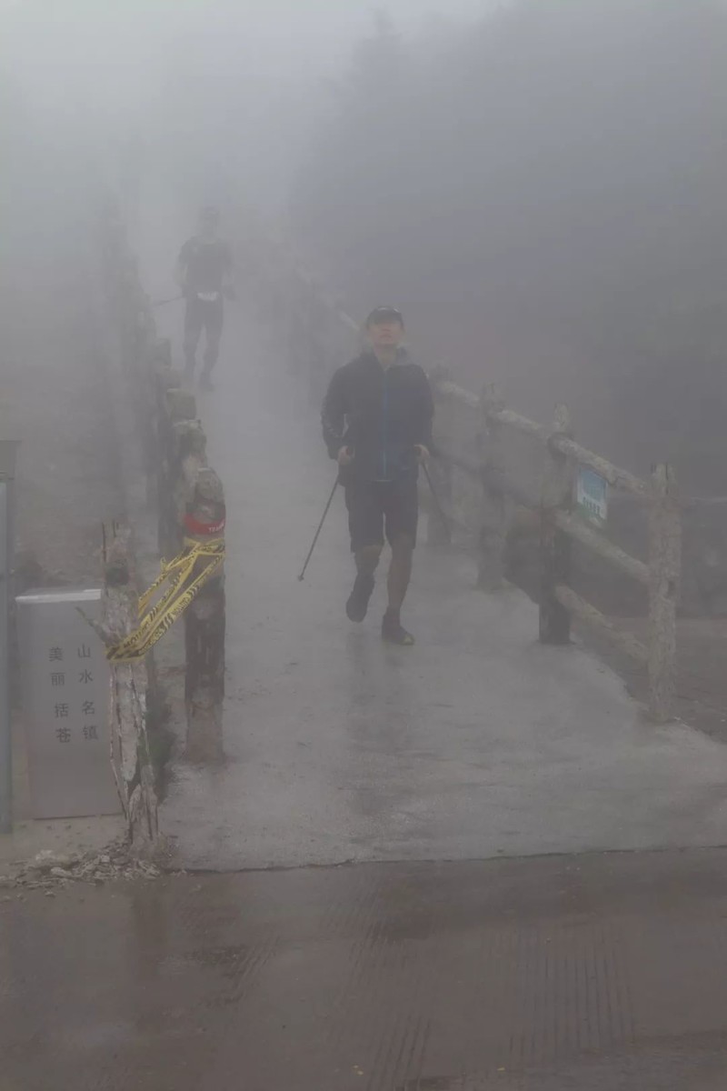 慢慢的,终于从烂泥中下落到方溪水库前面的村子,在石板路上我超过了一个人,我无意间回头,竟然是我偶像祁敏。我大惊!我怎么能看到他?我马上知道他肯定受了重伤。马上和他打了招呼,才知道他膝盖磕到了,打了绷带,只能到CP2退了。我心里惴惴,心想祁敏老师都摔了,我更应该谨慎前进了。