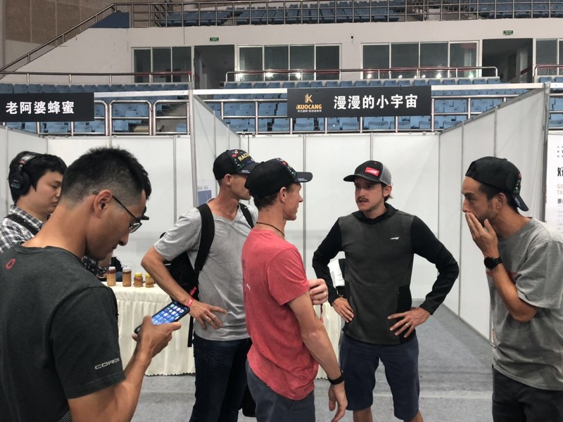 我于比赛前一晚来到了临海,到了之后直奔临海体育馆领装备。整个体育场搭建的井井有条,有展示区和参赛包领取的两个大区域。展示区我刚到的时候刚好是珊瑚主持的精英见面会,气氛满满。我按部就班领完装备,到展示区逛了一下,根据天气,我判断自己只带了一个长袖保暖恐怕是不行,就在展示区买了一件salomon的短袖T。事实证明这是一个明智的选择。