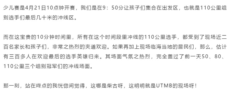 明年,我应该会带着女儿来参加珊瑚的少儿越野赛,为铁城越野的队友们加油。大家再会!