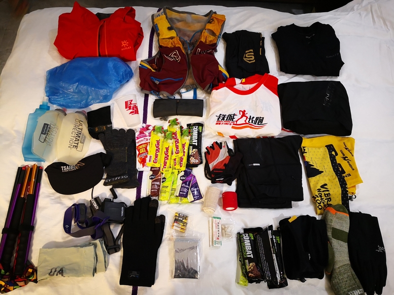 去年跑了香港100、柴古65以及环四姑娘山60,针对各种环境以及距离的装备我都准备得很充分了,所以这次也没有特别添置装备,赛前确保强制装备一个都不能少。