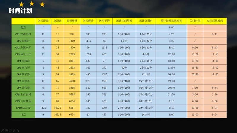 赛前根据去年65公里完赛时间预估了这次110公里完赛时间,计划24小时完赛,可是人算不如天算,一路玩泥巴玩了近30个小时。CP6换装点不慌不忙吃吃喝喝花费了一个半小时,到上白岩村出站时离关门时间只有30分钟。从38%的完赛率可以看出这次比赛是有多难。正如网络流传的下面这张图片: