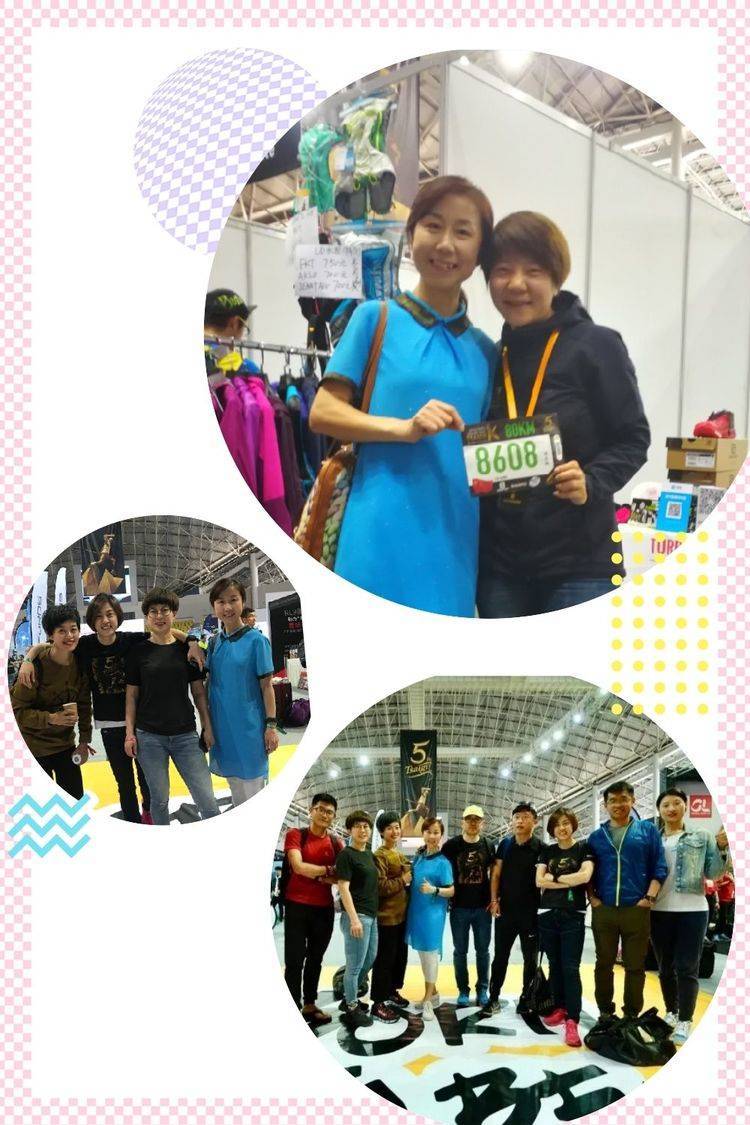 下了火车,行至出站口,不知道谁眼尖嘴快“组委会安排摄影的在这呢!”听到这话,循声望去,果然两只大炮筒架在通道尽头,我迅速插位当了一次背景抢了个镜头。站外的柴古赛事宣传画,吸引了参赛选手纷纷拍照,我们一行六人与来自马来西亚的选手一同拍照合影留念。出了车站,打车去领参赛包。出租车司机很热情,向我们介绍着临海的人文地理。我一直紧张怕晕车,司机说了什么全然没有听进去。望向车窗外,直觉这是一个充满详和气息、安静整洁的小城。强装检查很严格,志愿者们认真地履行着职责,毫不懈怠。老板娘也幽默得让人醉了。因提前将所有强制装备都放在了越野包里,只需打开行李箱将背包拿出来即可,我参赛包领取过程非常快速顺利。走出领物大厅,一眼便看到了坐在展区里的老板娘,估计不是太累就是不想被打扰,她正低着头。我冲进展位,不由分说的把老板娘拉了出来强行拍照,后面许多选手知道这是老板娘后,也纷纷要求合影(暗中在想:老板娘心里会不会骂我,害她当了好一会的照片架子……哈哈,老板娘的油是一定要揩地)。未出领物大厅,遇到了王洋、张娜(本届50K组女子第三)伉俪及大连朋友凯、美女旭和四七,又是一阵热闹的合影拍照。
