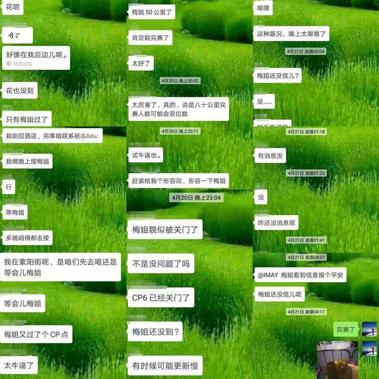 谢谢牛奶+糖、老杨、大伟、旺、小花、轮胎、黑马、原、晶师姐一直在微信上、在赛事平台上跟踪关注,有你们的陪伴,越野路上从不孤单。