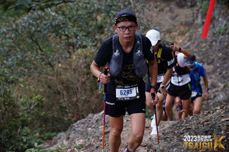 拿出手杖开始爬坡,这是我第一次在比赛中用手杖。2018年柴古100公里组动辄上千米的爬升曾让我两腿发颤,这次我学乖了。
