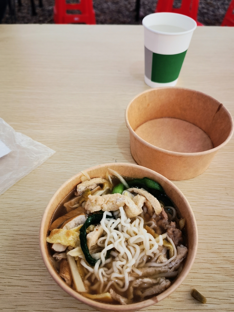 在32公里处的方溪水库补给点,干掉两碗面条,吃了点水果,装好水,抓一把坚果边走边吃。