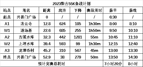我保持着每个月250公里左右的跑量,赛前对自己的跑步成绩做了评估,预计55公里完赛时间在7小时20分到8小时之间,其实心底还藏了个小九九——“柴古红马甲”。