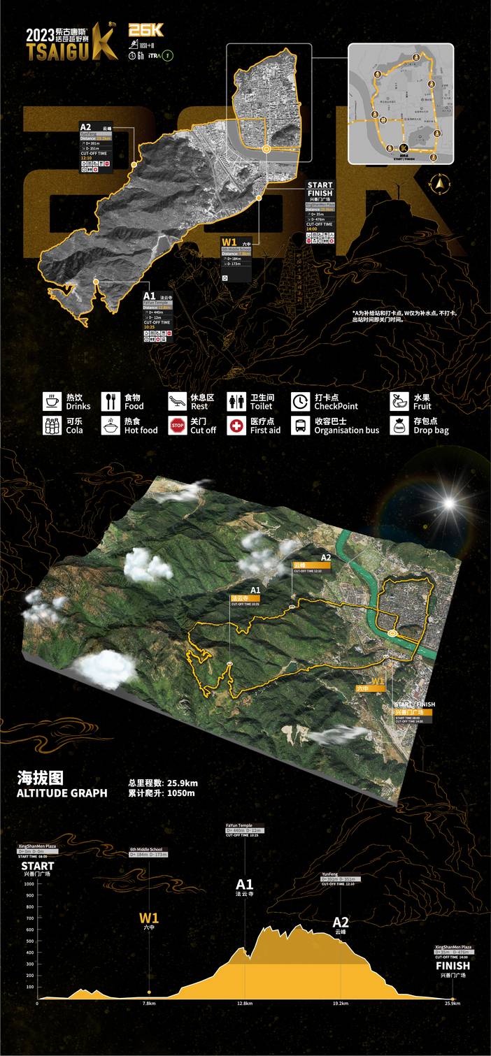 临海市区江南古长城脚下的兴善门广场,TSAIGU26在此起跑出发,起点将使用计时地毯,进入起跑区需检录,请大家尽可能提前入场。