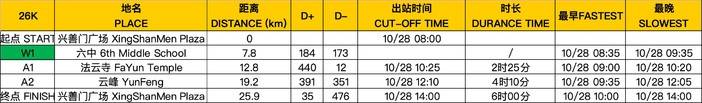 备注:A为补给站和打卡点,W仅为补水点,不打卡,出站时间即关门时间。