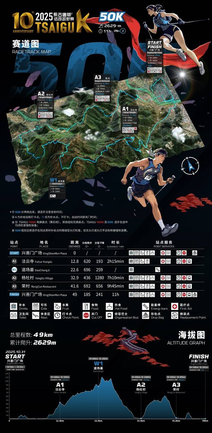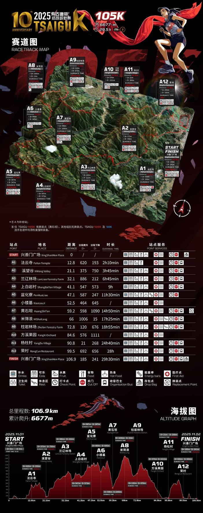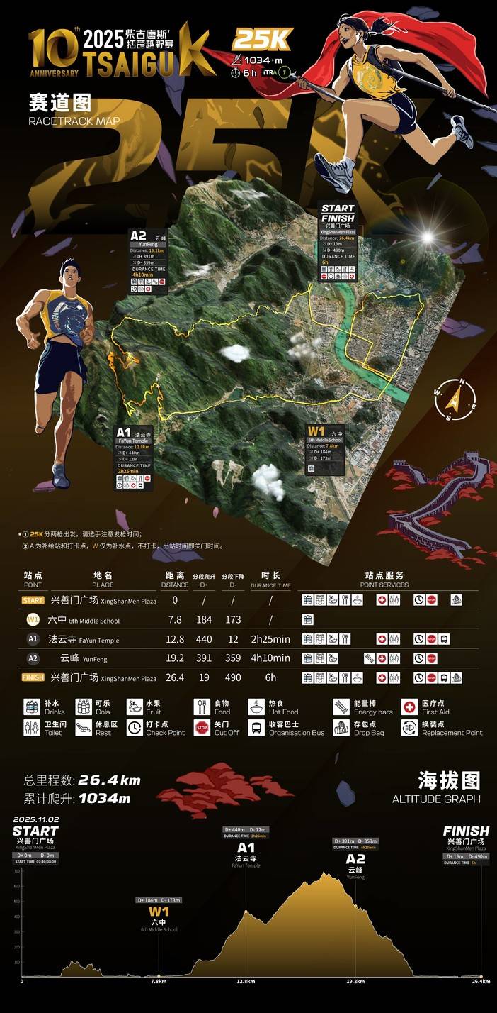 注:实际距离爬升数据及对应的关门时间可能会因赛道的施工等因素发生变动。